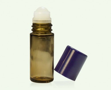 Le Flacon en verre de couleur brune est surmonté d'un ensemble Rol'On Bille large Bleu.